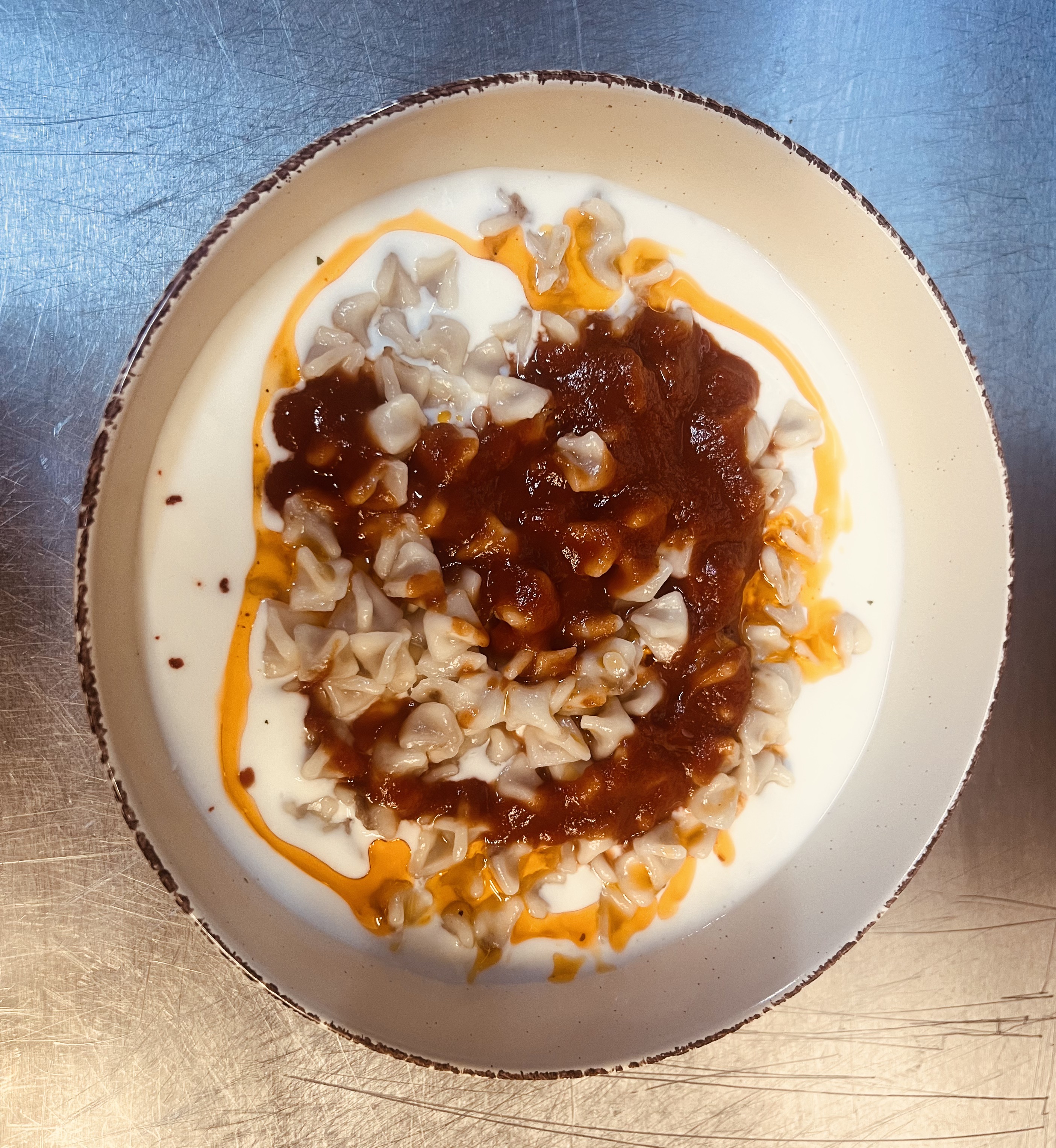 Homemade Turkish dumplings filled with spiced potato, served with creamy yoghurt and warm butter sauce with paprika and mint. Soft, savoury and full of flavour.