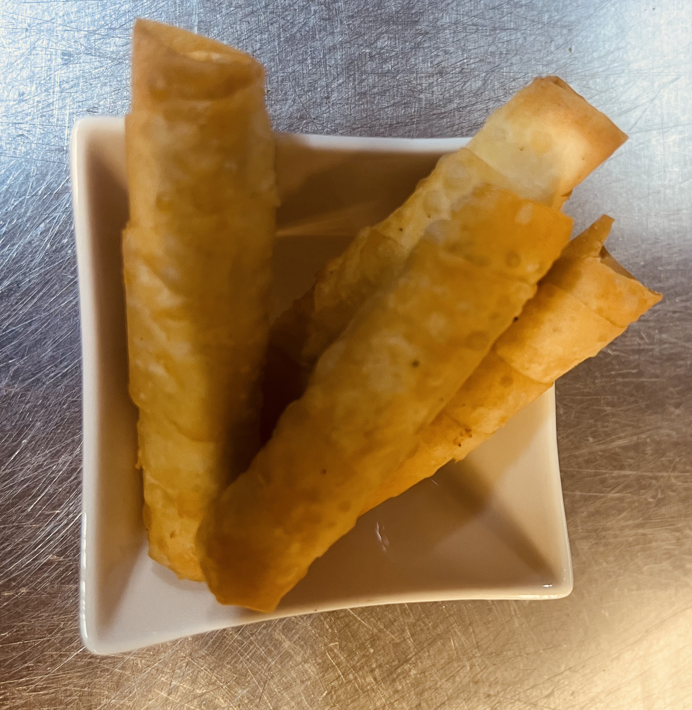 4 pcs. Crispy Turkish filo rolls filled with creamy white cheese. Perfect as a light savoury bite.